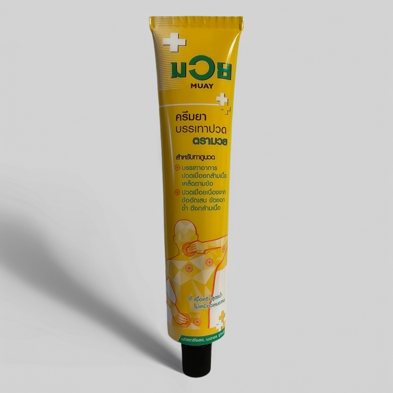 Autentický thajský krém MUAY s tradičnou receptúrou pre úľavu od bolesti. Obsahuje prírodné thajské bylinky – mentol, eugenol a metylsalicylát. Thajský krém MUAY poskytuje okamžitú úľavu svalov a kĺbov. Vodná báza, rýchlo sa vstrebáva, nemastí. 100g balenie.
